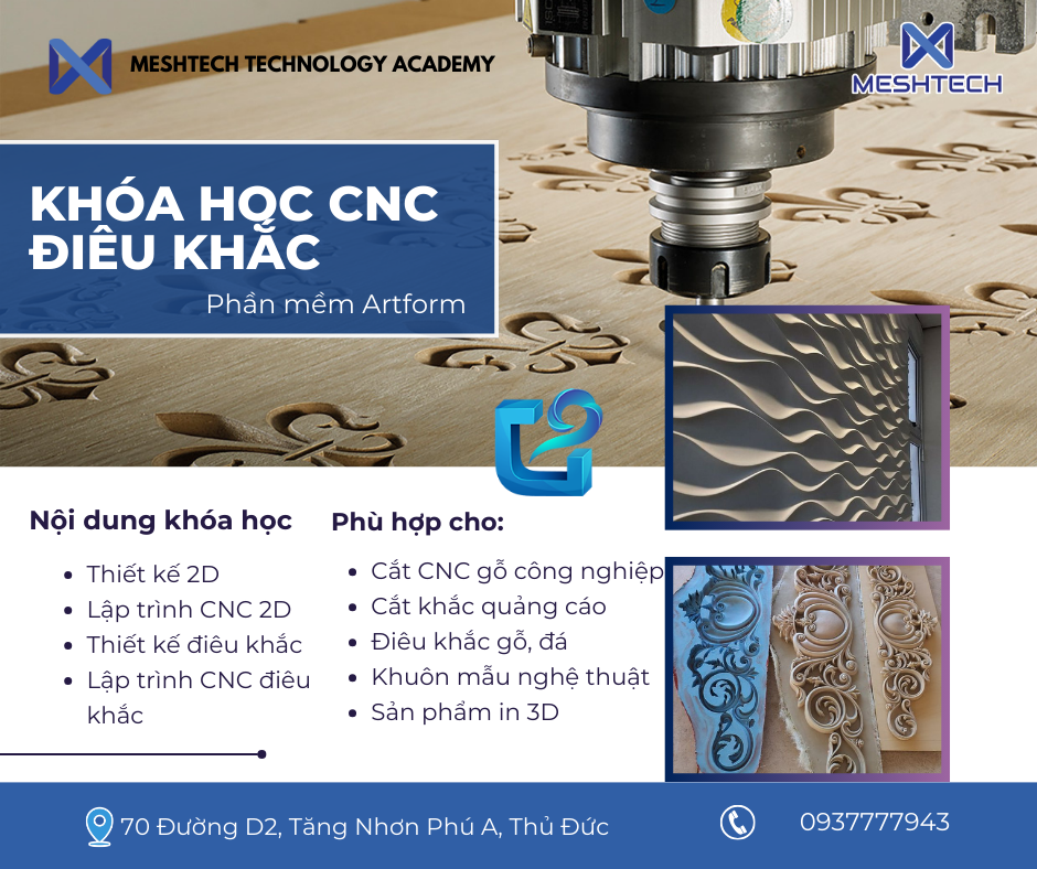 Kinh nghiệm đào tạo: MESHTECH được thành lập từ 2017, với hơn 10 năm kinh nghiệm trong lĩnh vực đào tạo thiết kế điêu khắc và lập trình nhiều loại máy CNC khác nhau, MESHTECH đã đào tạo cho hàng nghìn bạn kỹ thuật viên có kỹ năng và tay nghề, cung cấp nguồn nhân lực chất lượng cao.